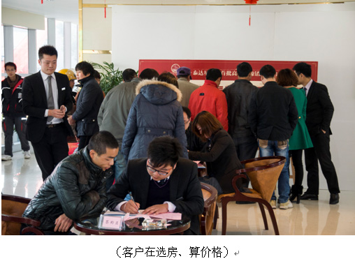 4月6日,泰達星河灣精品房源火爆開盤,雖是春寒料峭,卻絲毫擋不住購房客戶的熱情。一大早,銷售現場就人頭攢動,購房客戶有的在登記領號牌,有的向銷售人員咨詢房屋價格與戶型,不少客戶是全家出動,到現場篩選房源,大家都在充分利用開盤活動前的1個小時,選擇自己所中意的房源,銷售現場氣氛熱烈,盛況空前。